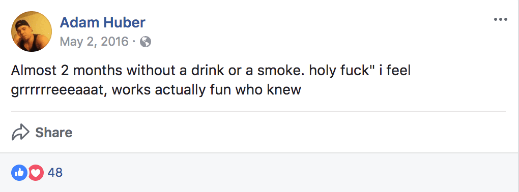 Adam Huber still drinking